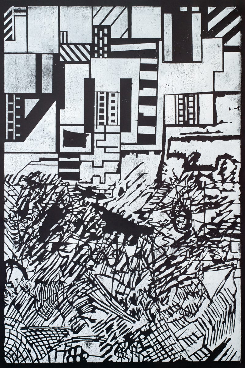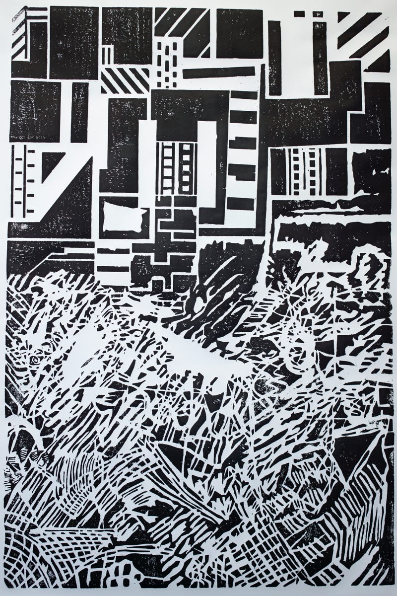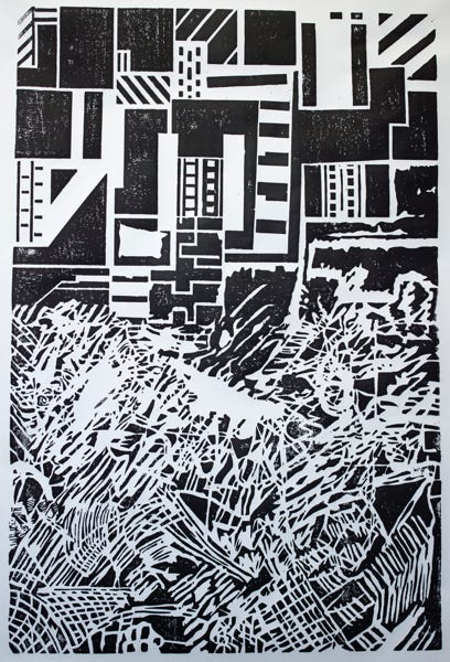 Linolschnitt / Einfarbiger Handabzug auf MDF