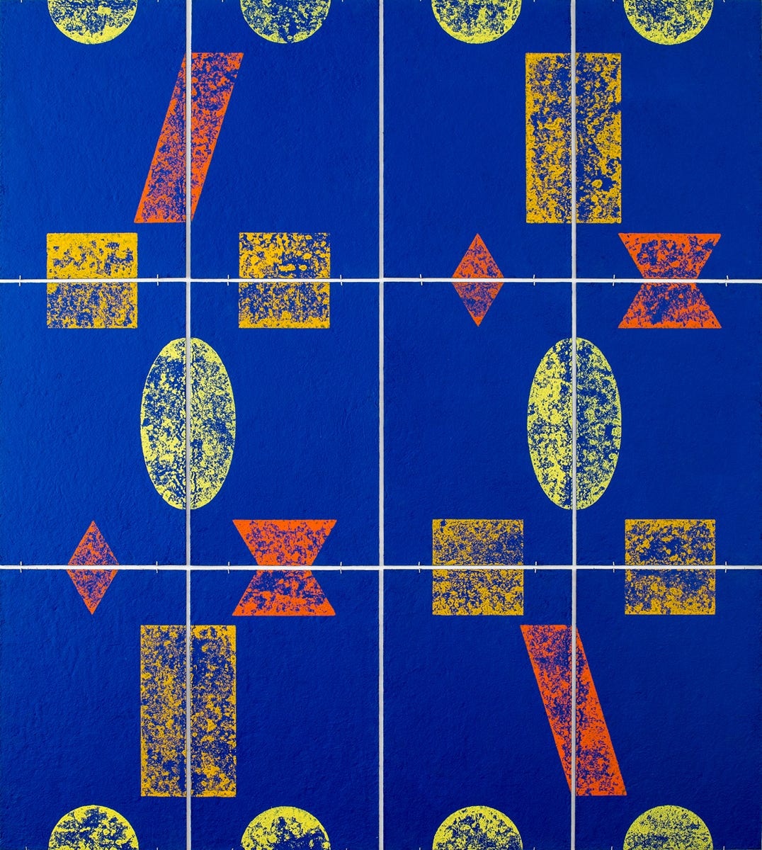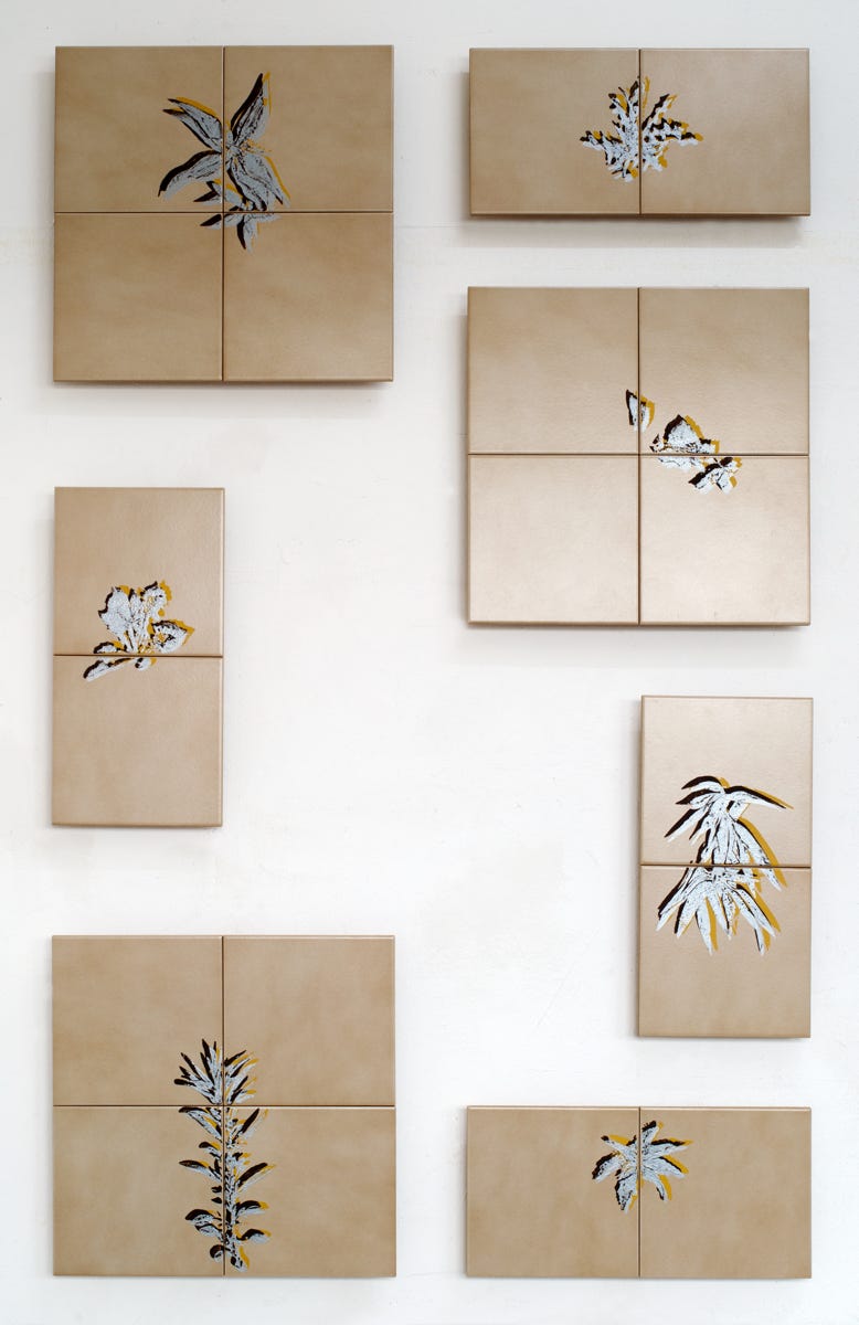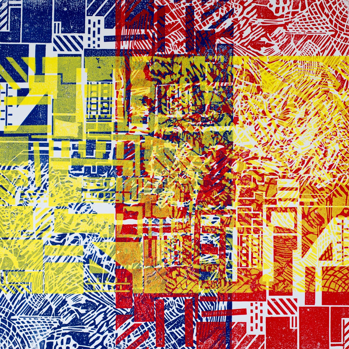 Linolschnitt / Dreifarbiger Handabzug auf Fliesen
