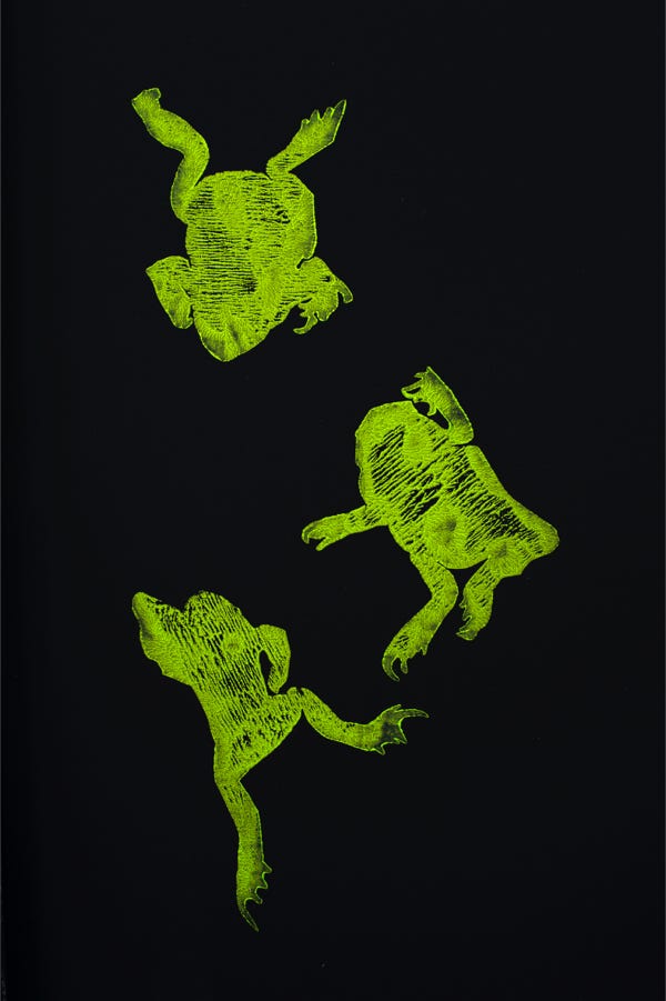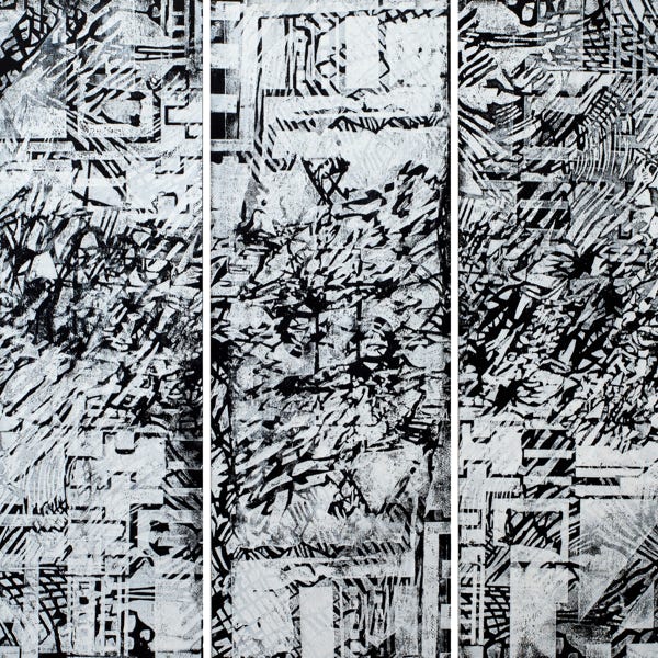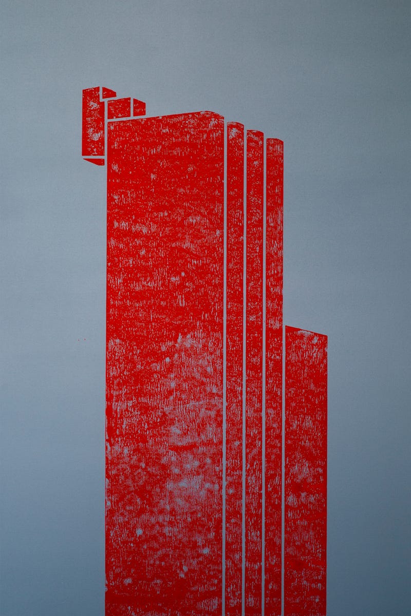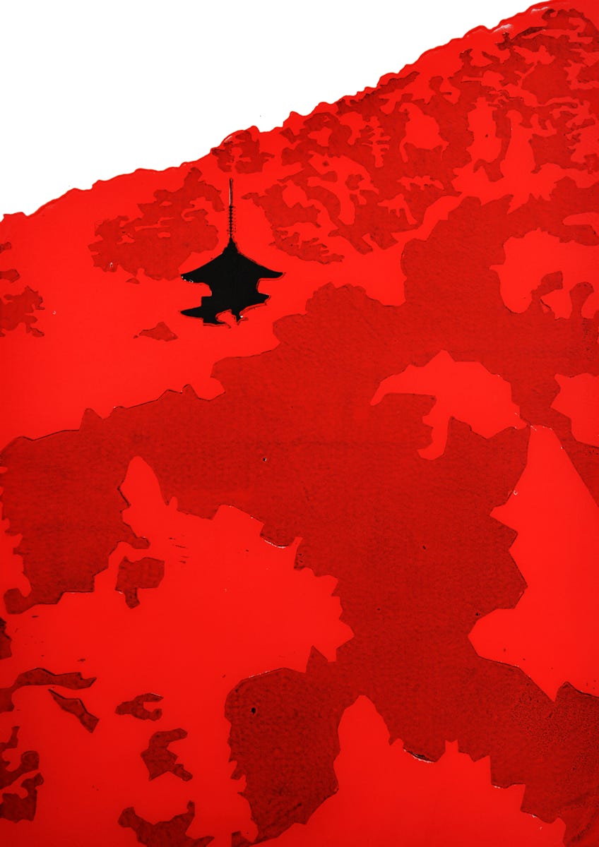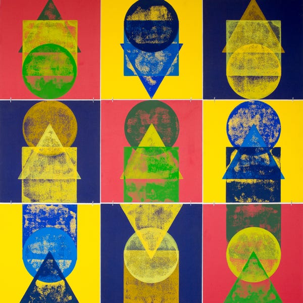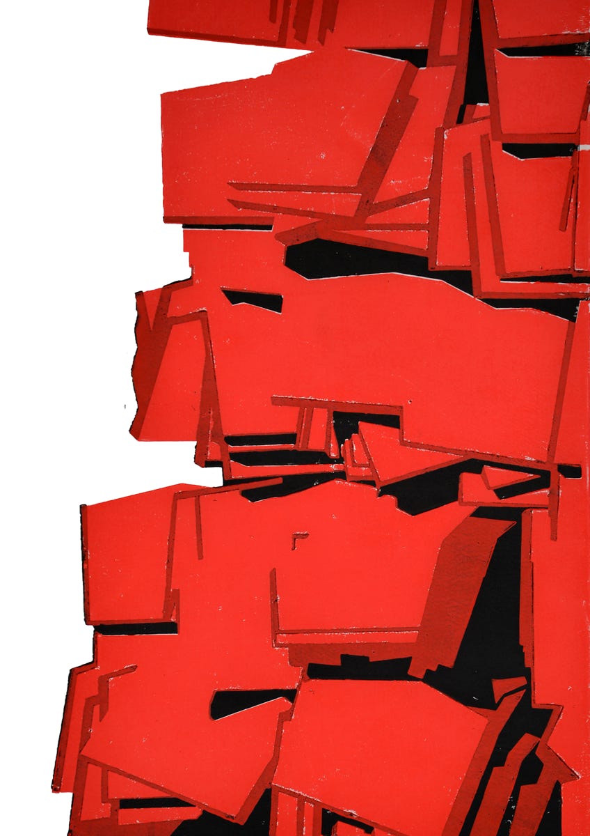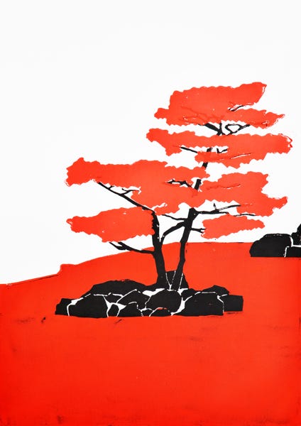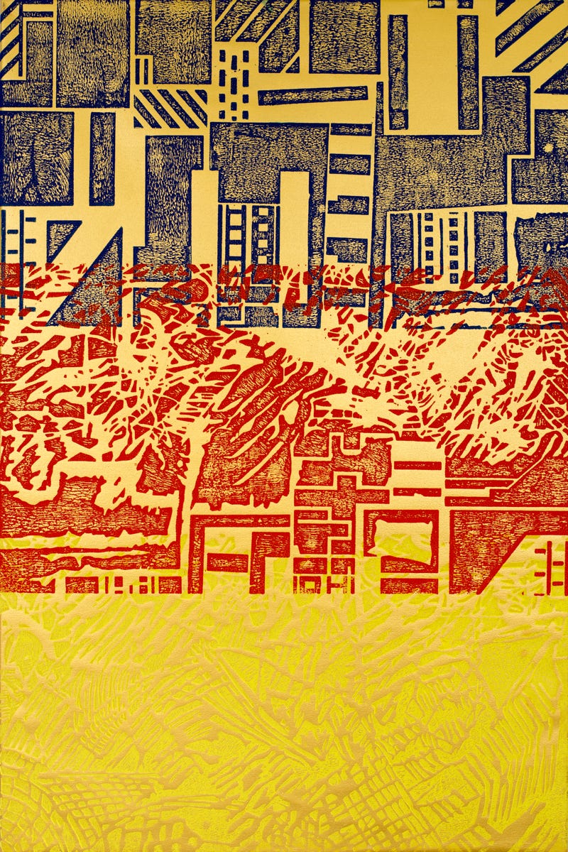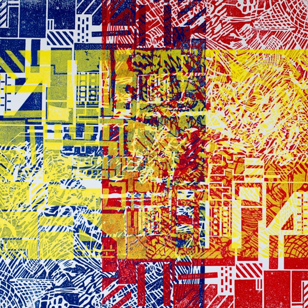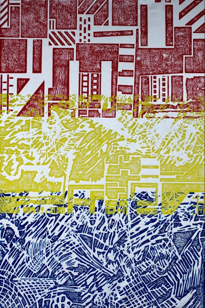 Holzschnitt / Dreifarbiger Handabzug auf Leinwand