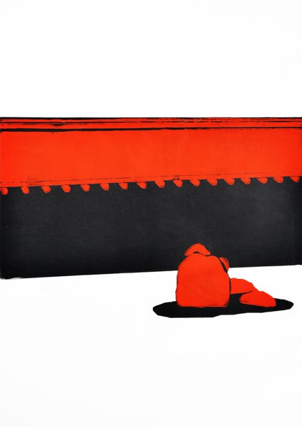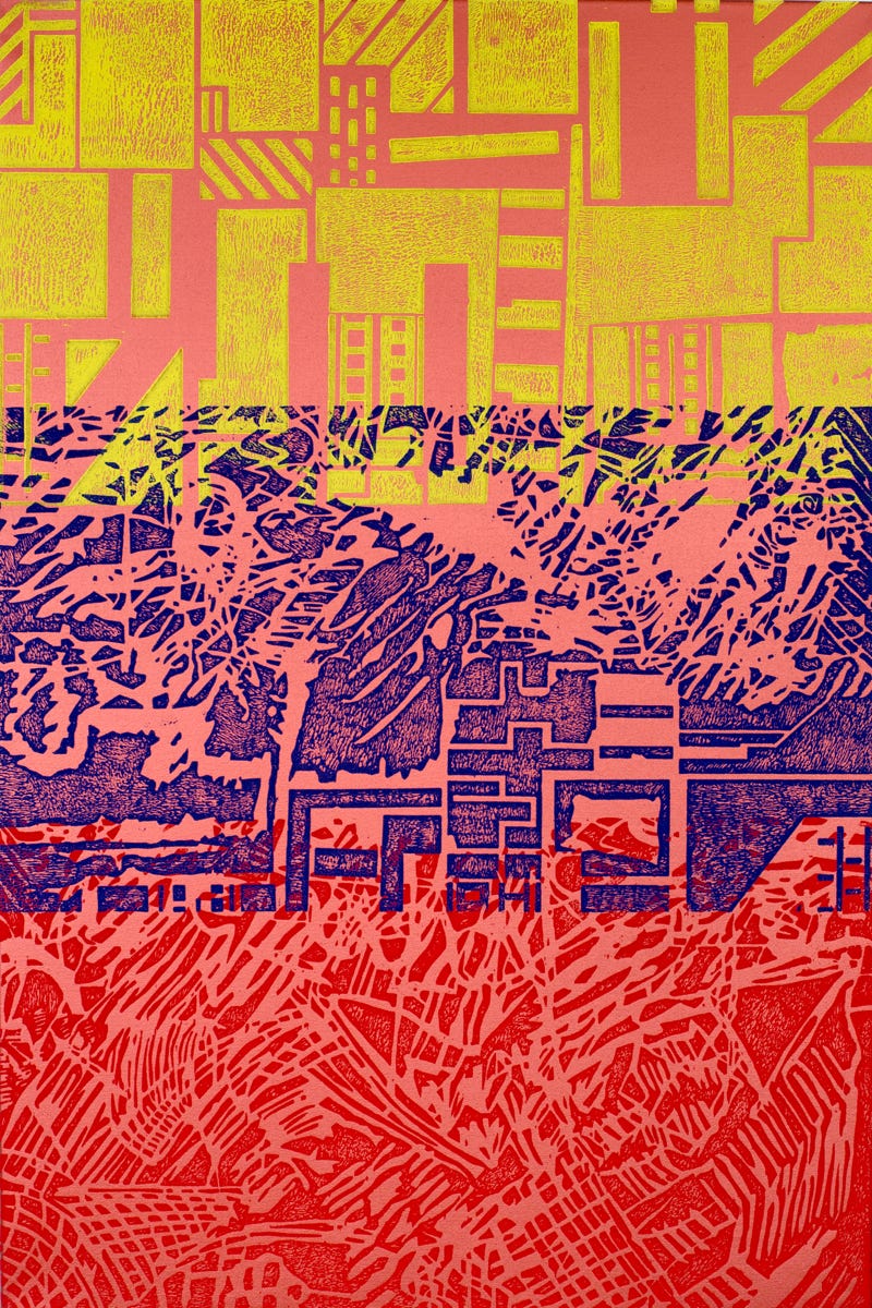 Linolschnitt / Zweifarbiger Handabzug auf Papier