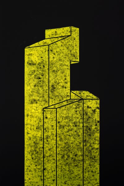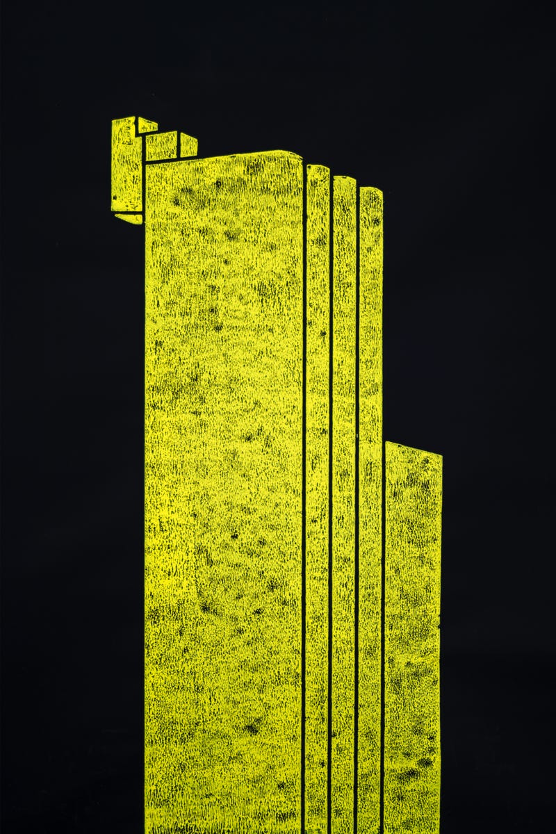 Holzschnitt / Einfarbiger Handabzug auf schwarzem Papier