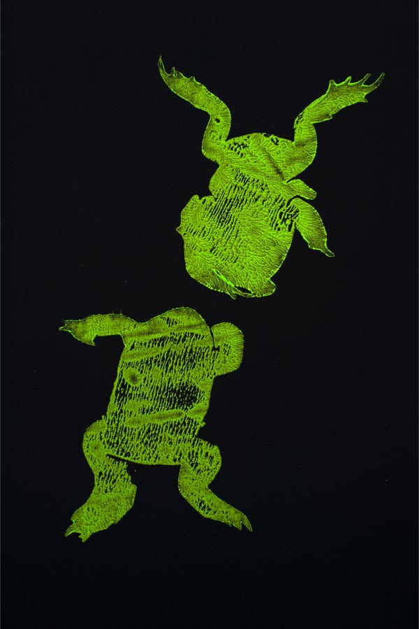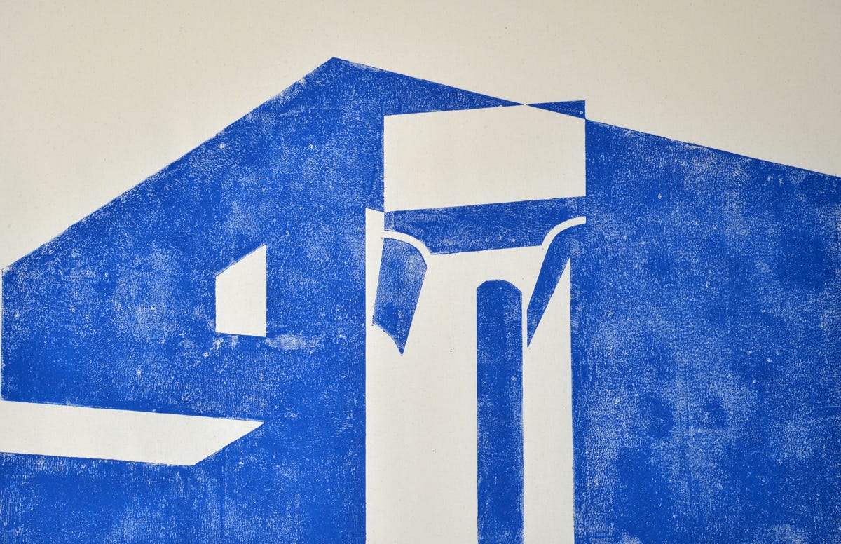 Linolschnitt / Zweifarbiger Handabzug auf Leinwand