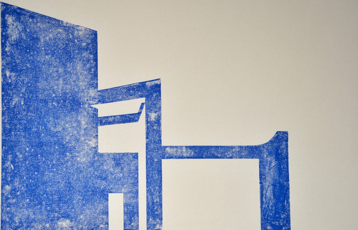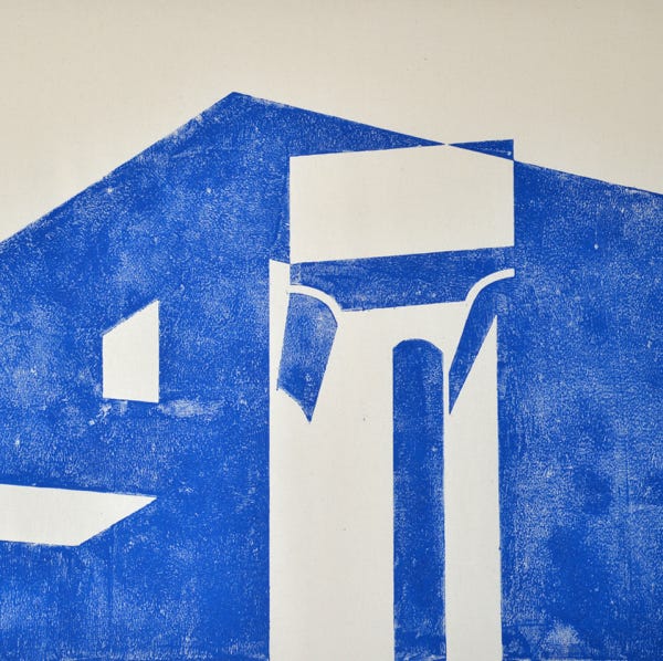 Linolschnitt / Einfarbiger Handabzug auf Leinwand